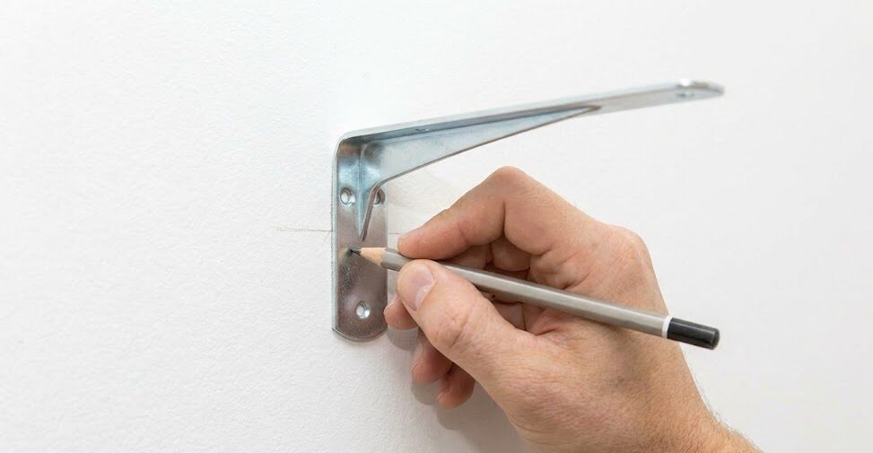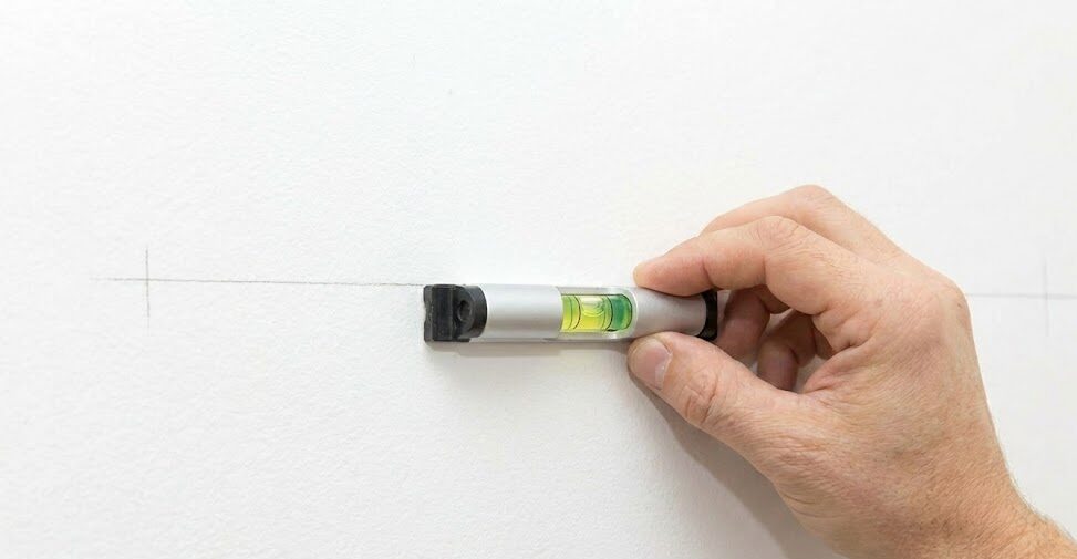 Use a level to ensure marks are perfectly straight. For shelves, both bracket positions must be exactly level or your shelf will be crooked. For mirrors, use the mirror’s hanging hardware to determine exact screw locations.